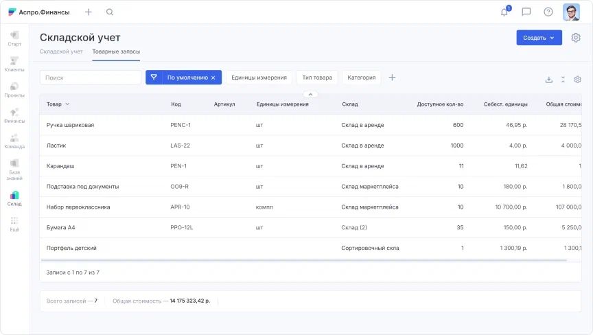 • ведите учет всех активов, в том числе складских запасов;